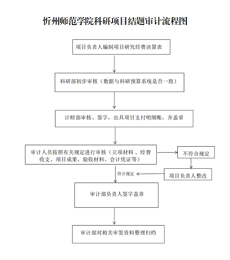 忻州师范学院科研项目结题审计流程图